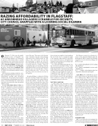 On February 11 of this year, the public comment portion of Flagstaff ’s City Council meeting erupted in an outpouring of grievance that marked what is quickly becoming the most controversial social and legal issue in the city. The speakers were resi- dents of Arrowhead Village, a trailer park in the west side neighborhood of La Plaza Vie- ja, where Georgia-based Landmark Prop- erties plans to remove their mobile homes to build a 650-bed luxury student housing complex.