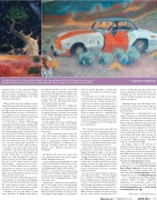 On the walls of his studio are two large works that demonstrate the style he has be- come renowned for. Citation on the Green is a park scene in which youths drink and so- cialize, and young lovers, their hearts aglow, lounge in the grass. In Chasing Shadows no More, a rusted, busted up old Triumph has found its resting place in a sagebrush flat, mesas and skies undulating in the distance. Mr. Begay recently reacquired the piece from a man in Santa Fe who purchased it in 2002, some deep tugging in his heart telling him he needed it back.