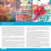 Watercolors: luminous translucent layers of colored water that spread and bloom in de- lightful and unexpected ways. Often thought of as either a sketch medium or as least forgiving and most difficult of paint mediums because the transparent quality makes it dif- ficult to cover up or erase mistakes, watercolors have nonetheless increased in popularity in recent years. But while many dabble in watercolors on the side, Roberta Rogers is a classically trained, third generation watercolorist, who at times uses other artistic mediums as well.